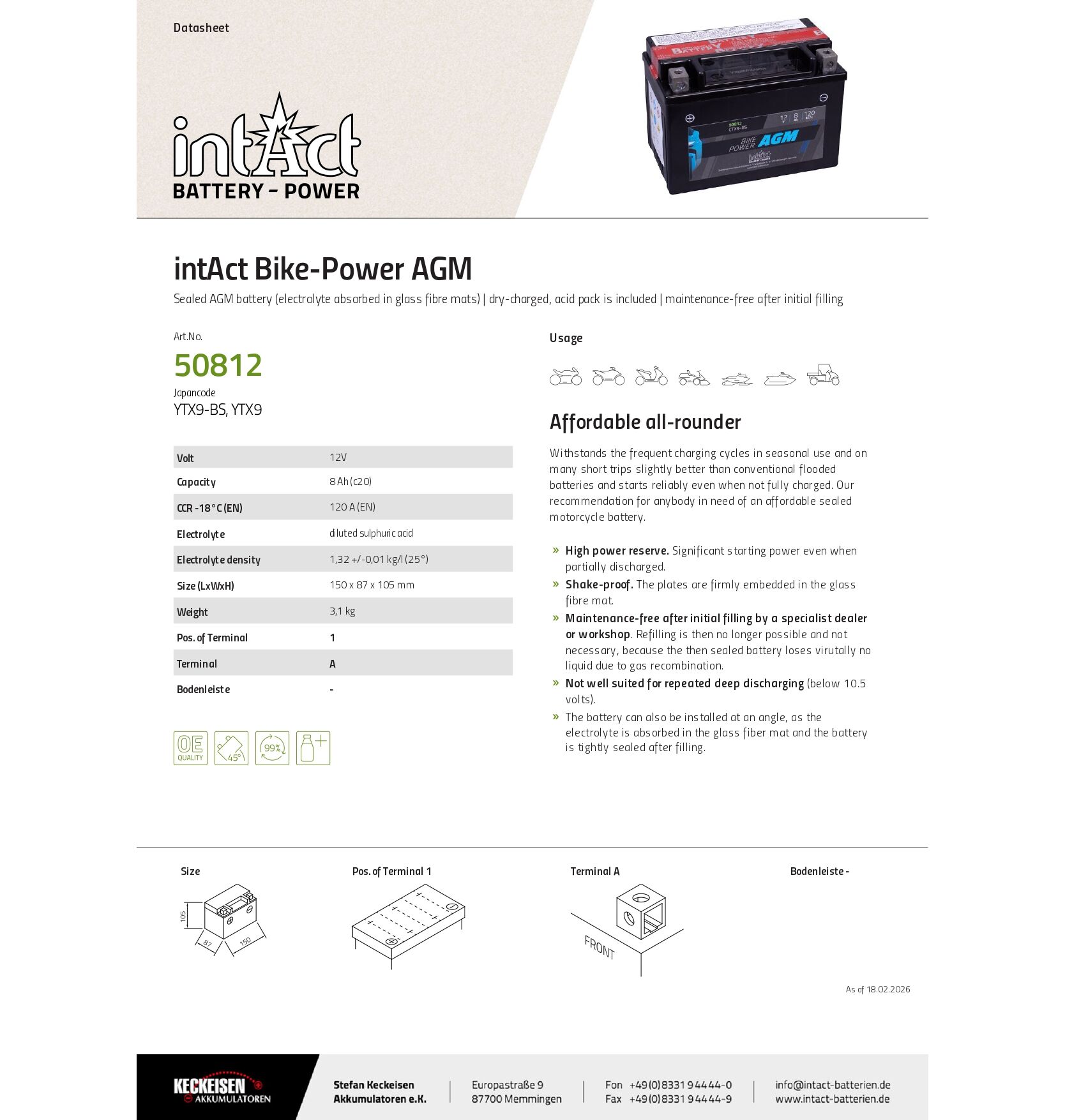 Μπαταρία Μοτοσυκλέτας intAct YTX9-BS 8AH | battery-expert.gr
